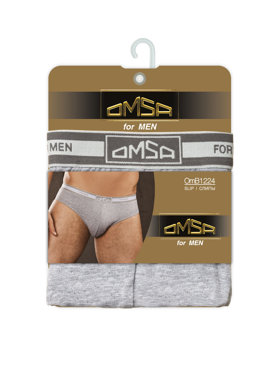 Мужские трусы-слипы OMSA с открытой резинкой серый меланж р L