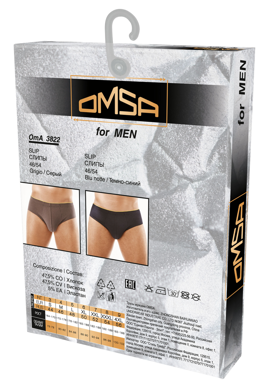 Мужские трусы-слипы OMSA с закрытой резинкой серые р XXXL