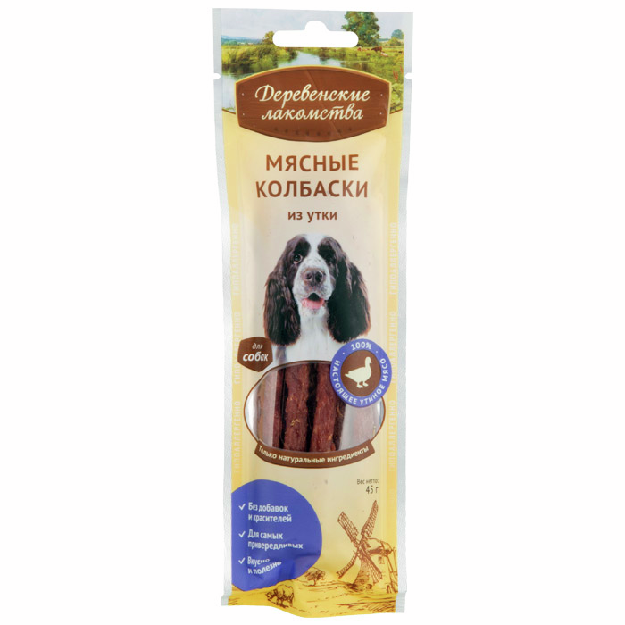 Мясные колбаски ДЕРЕВЕНСКИЕ ЛАКОМСТВА из утки для собак, 45 г