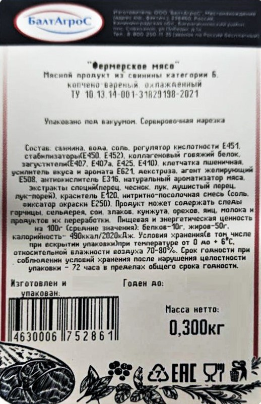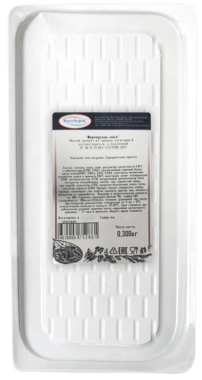 Мясо из свинины Балтагрос Фермерское копчено-вареное, 300г