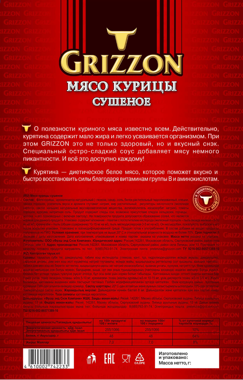 Мясо курицы Grizzon сушеное, 36г