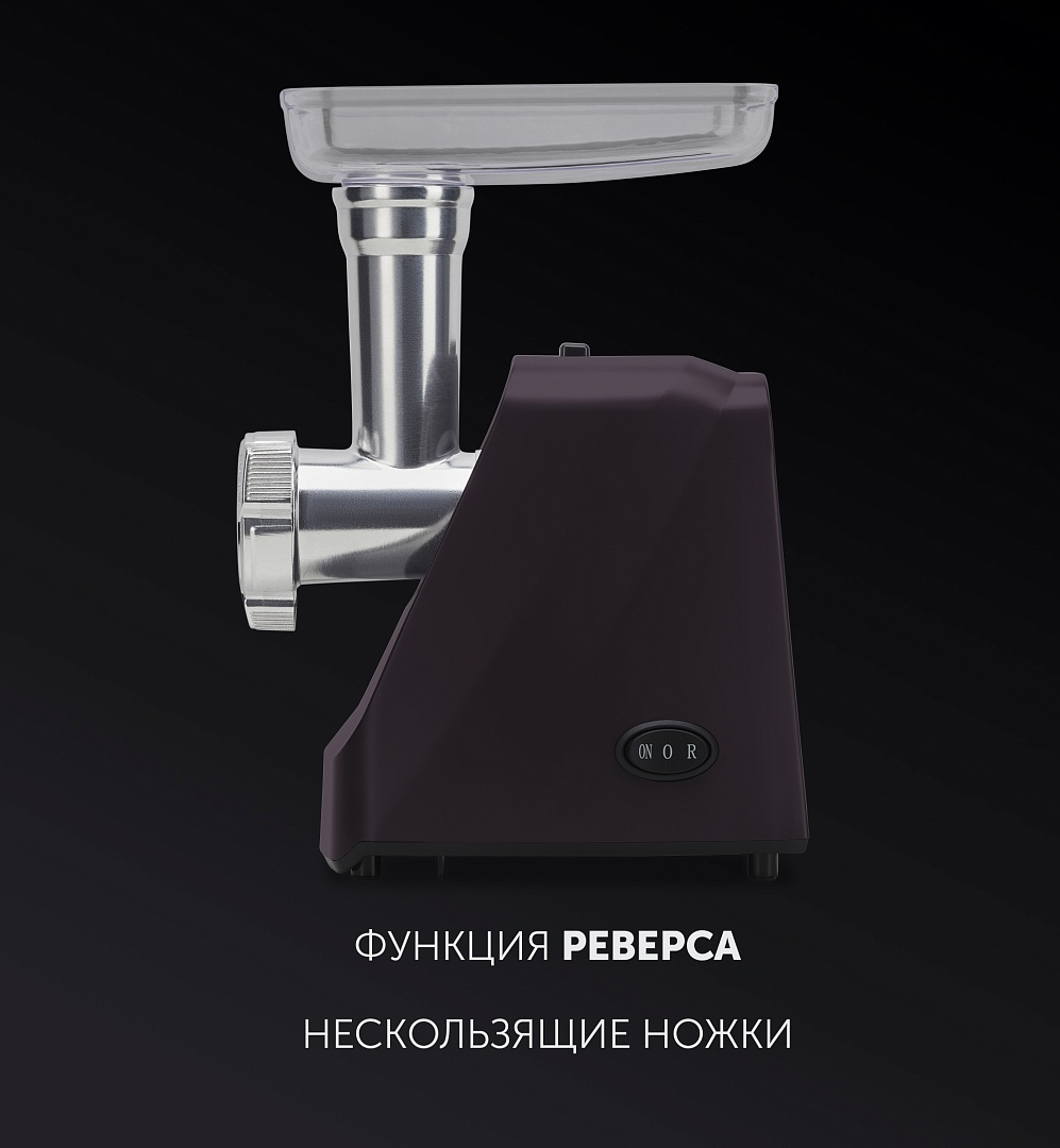 Высокая производительность: До 2 кг фарша в минуту!Функция реверса.Нескользящие ножки.В комплекте:- 2 решетки из высококачественной стали (5 мм, 7 мм);- Лоток для мяса из высококачественного пластика;- Пластиковый толкатель.