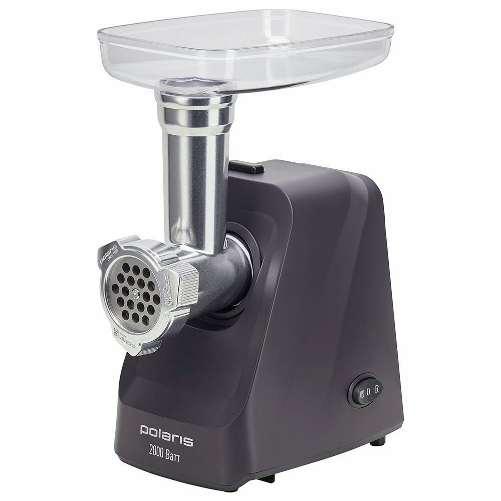 Мясорубка Polaris PMG 2050 RUS в симпатичном фиолетово-серебристом корпусе станет эффективным и неутомимым помощником для кухни, где любят готовить домашние полуфабрикаты впрок. Мощность модели достигает 2000 Вт, а ее производительность – 2.5 кг/мин. После непрерывной работы прибора в течение 3 мин ему потребуется кратковременная передышка, после чего снова можно приступить к переработке мяса в фарш. Комплектация модели предусматривает наличие 2 перфорированных дисков для мелкой и крупной нарубки фарша. Благодаря системе реверса мясорубку Polaris PMG 2050 RUS не придется разбирать, если внутри застрял чересчур жилистый кусочек.Отдельно стоит отметить, что прибор эффективно справляется не только с мясом, но и овощами: для этого он укомплектован 2 терками и насадкой для шинковки.