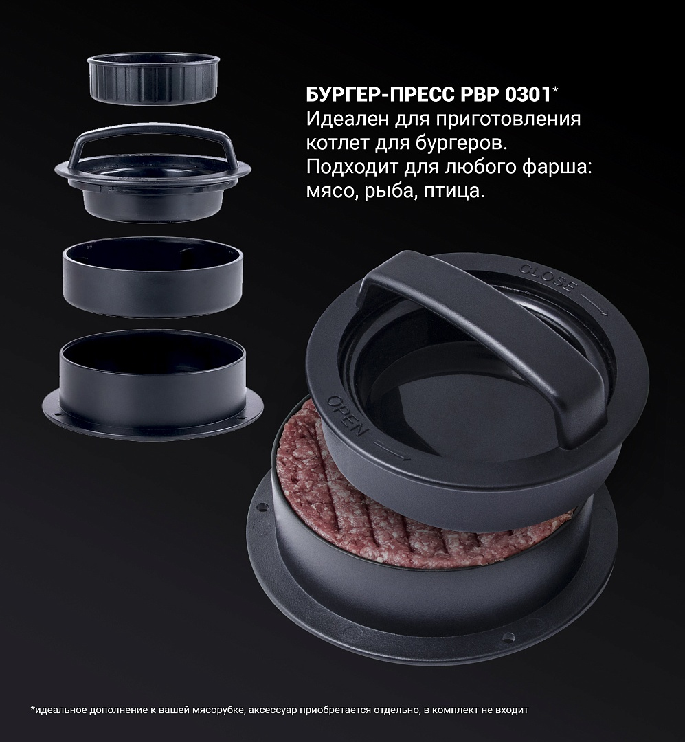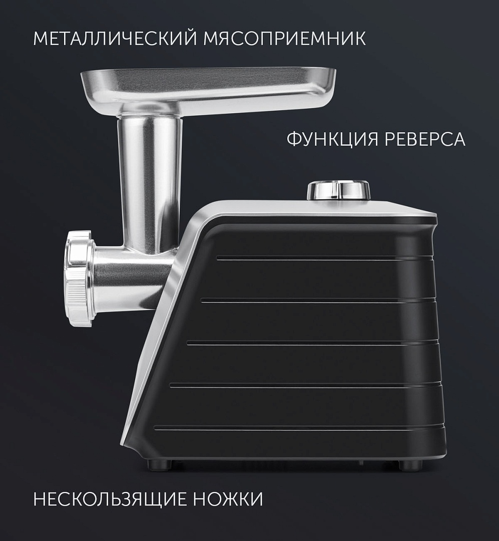 Мясорубка Polaris PMG 2546 с двигателем мощностью 2500 Вт впечатляет своей производительностью. Всего за одну минуту такая модель способна перемолоть в фарш до 2,7 кг говядины, свинины, баранины или птицы. Чтобы в процессе работы вам не пришлось останавливаться и разбирать прибор для освобождения от налипших жил и кусочков мяса, в устройстве предусмотрена функция реверса. При ее включении шнек начинает вращаться в противоположном направлении, очищаясь самостоятельно. В комплектацию с мясорубкой входят три перфорированных диска с отверстиями разного диаметра. Они дают возможность получать фарш с более нежной или, напротив, крупной и выразительной консистенцией. Упростить очистку дисков после окончания работы с мясом позволяет входящее в комплект специальное приспособление. С помощью этой мясорубки можно сделать не только тефтели или котлеты. Прибор поставляется вместе с насадками для приготовления домашних колбасок и кеббе.Непрерывное время работы мясорубки составляет 3 минуты. После этого необходимо сделать непродолжительный перерыв. Во избежание случайных поломок производитель снабдил модель функцией защиты двигателя от перегрева. Корпус и толкатель мясорубки изготовлены из прочного и устойчивого к повреждениям прочного пластика. Перфорированные диски, шнек и загрузочный лоток произведены из металла. Ножки прибора снабжены прорезиненным покрытием: оно гарантирует устойчивость и исключает риск скольжения включенной мясорубки по столу. Для работы прибор подключается к электросети при помощи шнура длиной 1,8 метра. Для его удобного хранения в корпусе имеется специальный отсек. Приобрести мясорубку Polaris PMG 2546 можно в торговом центре METRO.Характеристики:Максимальная мощность: 2500 ВтНоминальная мощность: 500 ВтПроизводительность: 2,7 кг/минСистема реверса: естьКоличество перфорированных дисков: 3Насадка для приготовления колбас: естьНасадка для кеббе: естьМаксимальное время непрерывной работы: 3 минутыМатериал корпуса: пластикМатериал лотка: металлЗащита двигателя от перегрузки: естьПрорезиненные ножки: естьМаксимальная высота посуды: 100 ммШирина: 26 смВысота: 41 смГлубина: 41 смВес: 4,16 кг