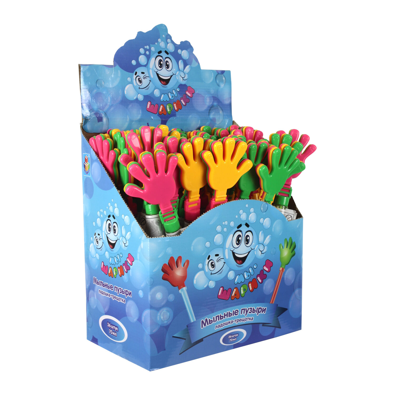 Пузыри мыльные 1Toy колба с ладошкой-трещоткой, 70мл