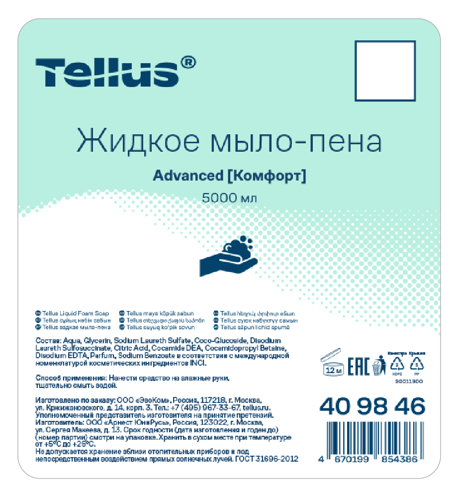 Мыло-пена жидкое Tellus Комфорт, 5л