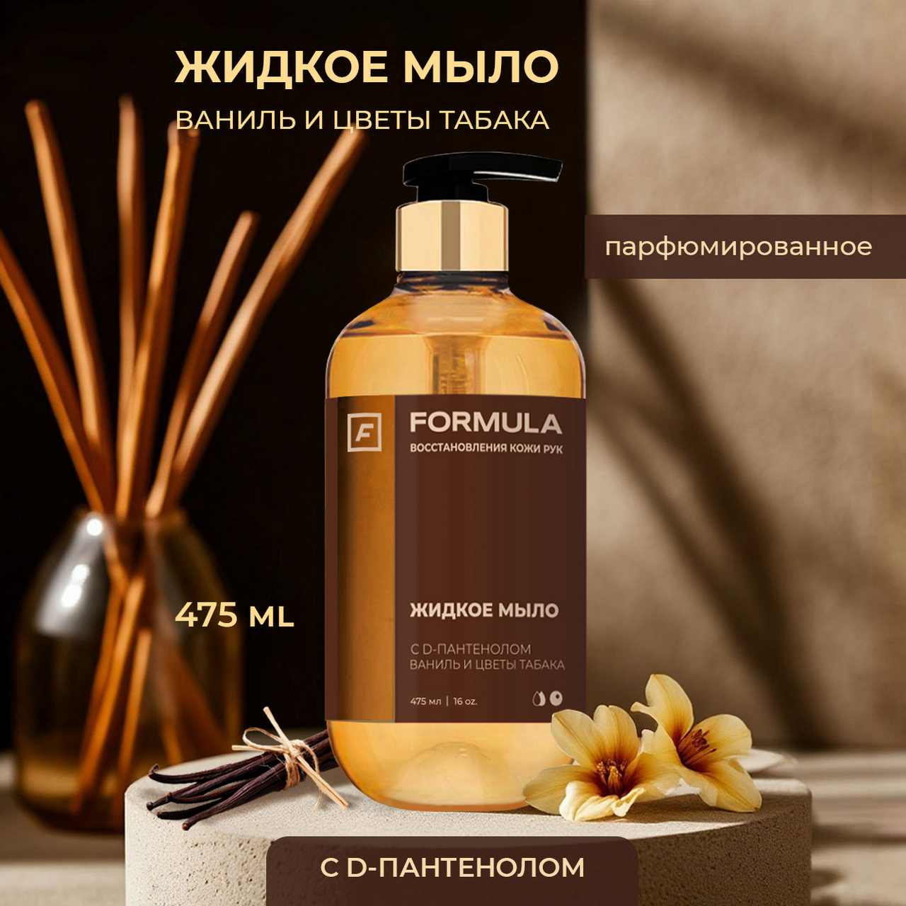 Мыло жидкое F Formula D-пантенол с ванилью и цветами табака, 475мл
