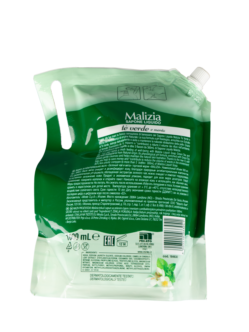 Универсальное решение: жидкое мыло идеально подходит как для мытья рук, так и для бережного ухода за телом. Одно мыло - множество возможностей. Гармония для кожи: жидкое мыло Malizia нормализует кислотно-щелочной баланс, поддерживая оптимальное состояние кожи. Формула, обогащенная экстрактом зеленого чая, мягко очищает и помогает поддерживать естественное увлажнение кожи. Жидкое мыло бережно очищает, питает, увлажняет Вашу кожу. Оно снимает раздражение и нормализует микрофлору. А приятный аромат зеленого чая и жасмина подарить настроение и расслабление.
