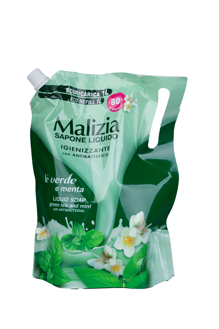 Мыло жидкое Malizia антибактериальное зеленый чай-мята, 1л