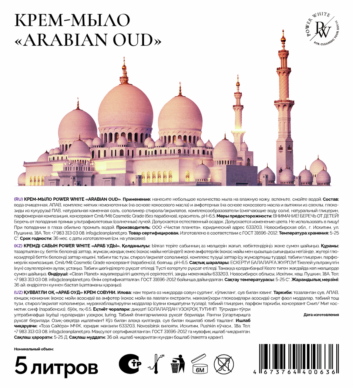 Крем-мыло для рук. Содержит глицерин и сделан с добавлением биоразлагаемых ПАВ. Эффективно устраняет грязь и бактерии, имеет правильную реалогию без желеобразной консистенции. Благодаря своей легкой пенящейся текстуре, переносит волшебные ароматы востока в вашу ванную комнату. Благодаря специальной формуле, помогает коже сохранять влажность.