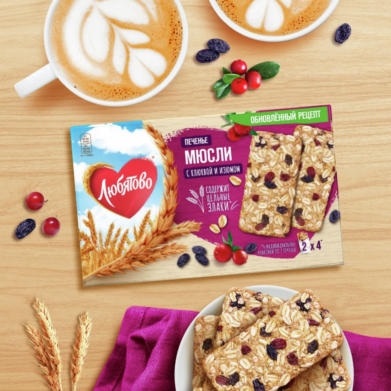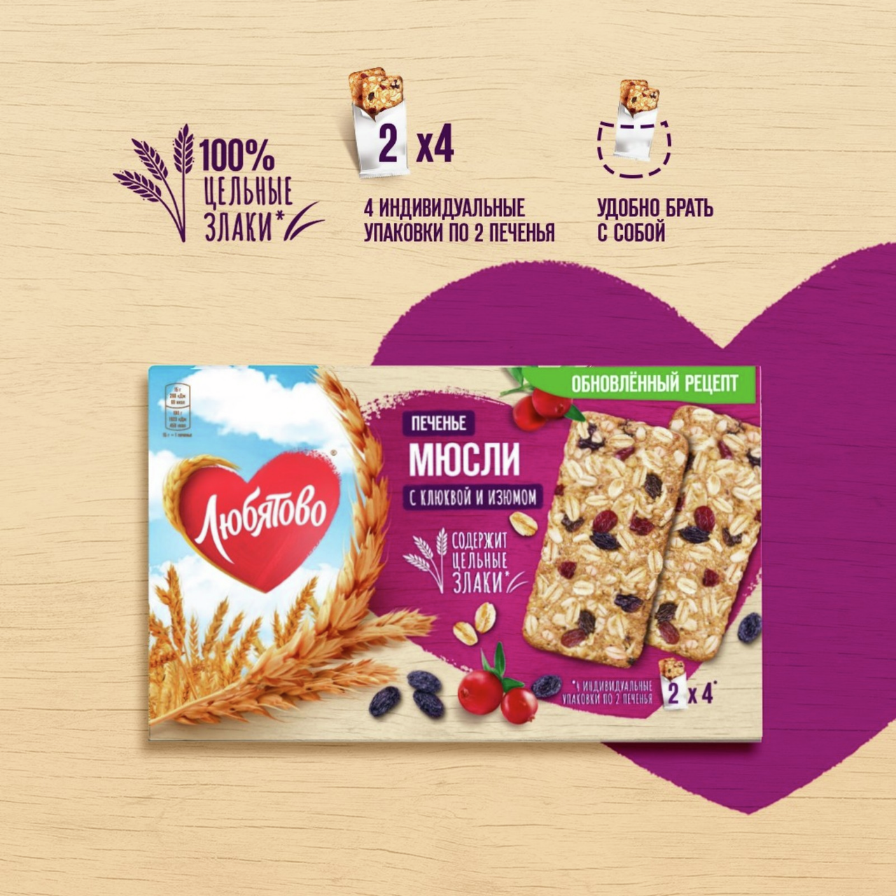 Печенье злаковое Любятово Мюсли с клюквой и изюмом, 120г
