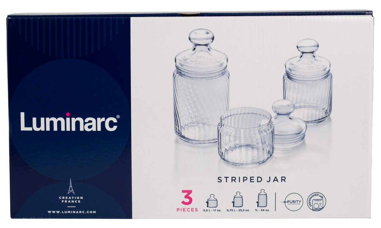 Набор банок Luminarc Striped Jar 500мл, 750мл и 1л