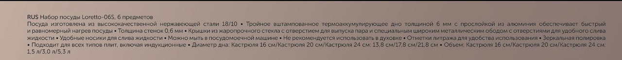 Это отличное сочетание функциональности и надежности. Он будет прекрасным дополнением к любой кухне и поможет вам с легкостью приготовить самые разнообразные блюда. Набор кастрюль выполнен из высококачественной нержавеющей стали 18/10. Форма корпуса - Conical shape. Технология Impact- тройное штампованное термоаккумулирующее дно с прослойкой из алюминия. Толщина стенок 0.6мм Технология TurboHeat - плавный переход от дна к стенкам повышает надежность крепления дна, обеспечивает быстроту нагрева. Отличительная особенность кастрюль - носик для слива жидкости. Крышки в комплекте из жаропрочного стекла с отверстием для выпуска пара. Подходит для всех типов плит, включая индукционные.