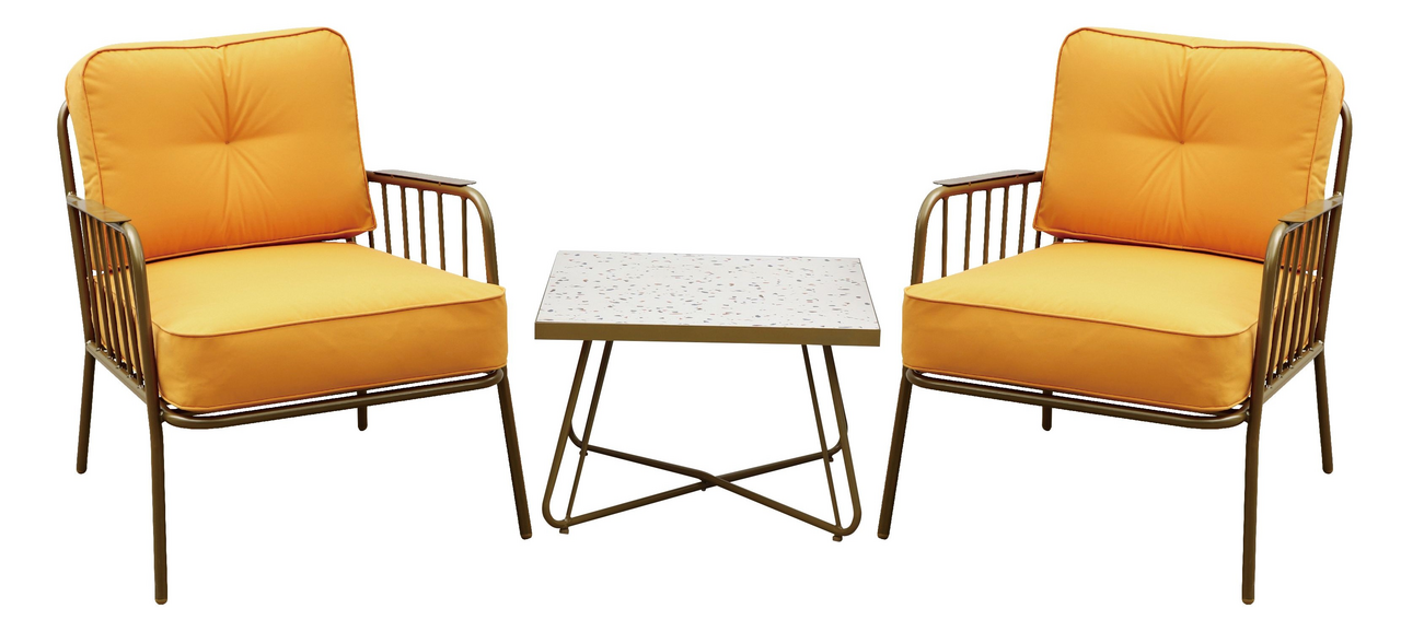 Как оригинально оформить интерьер или экстерьер загородного комплекса, ресторана, отеля или кафе? Нотку роскоши и комфорта внесет набор мебели от METRO PROFESSIONAL в золотистом дизайне. Он становится продолжением элегантных стилей барокко, рококо, классицизма, ампира и модерна. Там, где расположены кресла и столы в золотисто-желтом цвете веет ощущением богатства, легкости, гармонией и умиротворением. Коллекция подходит для кафе, гольф-клубов, гостиниц, которые презентуют величественный и монументальный интерьер. В наборе поставляется два кресла размером 79 х 72 х 82 см и небольшой стол 40 х 60 х 60 см. Мебель создает неповторимую атмосферу и отличается высоким качеством исполнения. Ее стальное основание придает устойчивость, хорошо противостоит механическим повреждениям, воздействию пыли, влаги и ультрафиолета. Текстиль на креслах характеризуется хорошей воздухопроницаемостью. Приятный на ощупь материал устойчив к загрязнениям, разрывам и скорому износу. Он хорошо отстирывается даже от въевшихся загрязнений и пятен. Особый шарм коллекции добавляет керамический стол. На нем можно разместить сет из роллов или суши, поднос кофейными чашками, фондю, настольную игру или аудиоколонку. Клиенты заведения скорее предпочтут отдых и разговоры за столиком от METRO PROFESSIONAL, чем гамак или кресло-качели. Керамика обладает особым магнетизмом. Материал устойчив к любым внешним воздействиям, надолго сохраняет цвет и форму, а также обеспечивает легкий уход. Любые крошки и загрязнения легко удаляются с его поверхности одним движением руки.