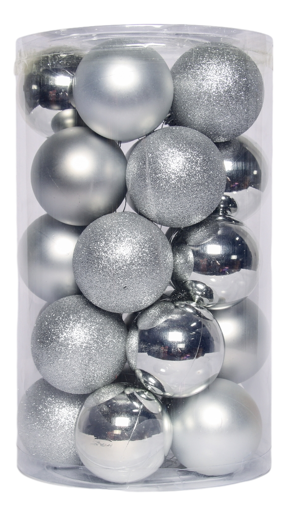 Набор елочных шаров серебряный 8см, 25шт