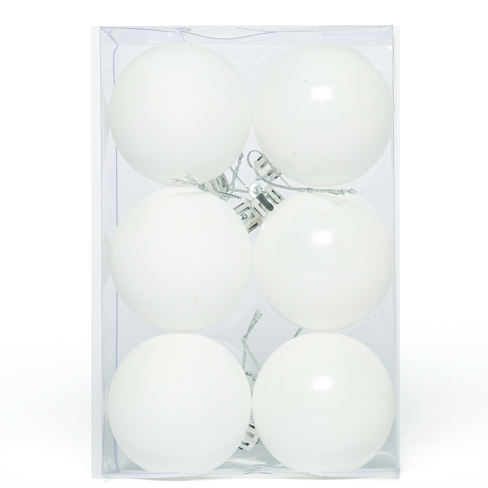 Набор елочных шаров белый 8см, 6шт