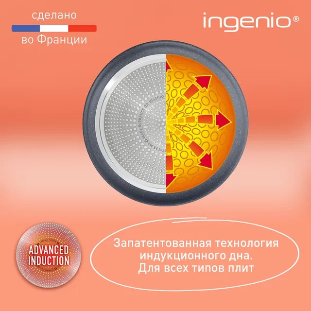 Набор сковород Tefal Granit Ingenio, 24 + 28 см изготовлен из алюминия с антипригарным покрытием, которое позволяет готовить с минимальным количеством масла или вообще без него. Уникальный дизайн по типу матрешки позволяет экономить много места. Посуда подходит для всех типов плит, кроме индукции. Сковороды могут использоваться и в духовом шкафу. Каждая из них имеет уникальный индикатор температуры, который вовремя подскажет, когда вам можно приступать к готовке. Их прочное дно обеспечивает быстрый и равномерный нагрев, а внутреннее антипригарное покрытие предотвращает прилипание пищи и гарантирует повышенную износостойкость даже при ежедневной эксплуатации. Набор управляется одной безопасной съемной ручкой, на которую компания Tefal дает 10-летнюю гарантию. После использования посуду можно мыть в посудомоечной машине, а затем сложить по принципу матрешки для компактного хранения.