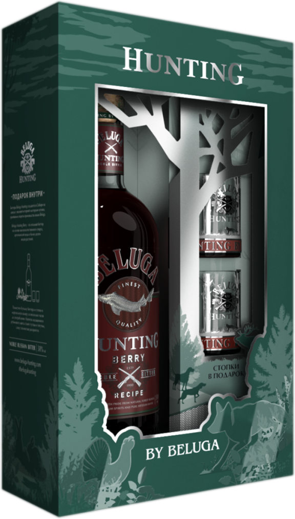 Набор ликер Белуга Хантинг ягодный+2 стопки, 0,7л