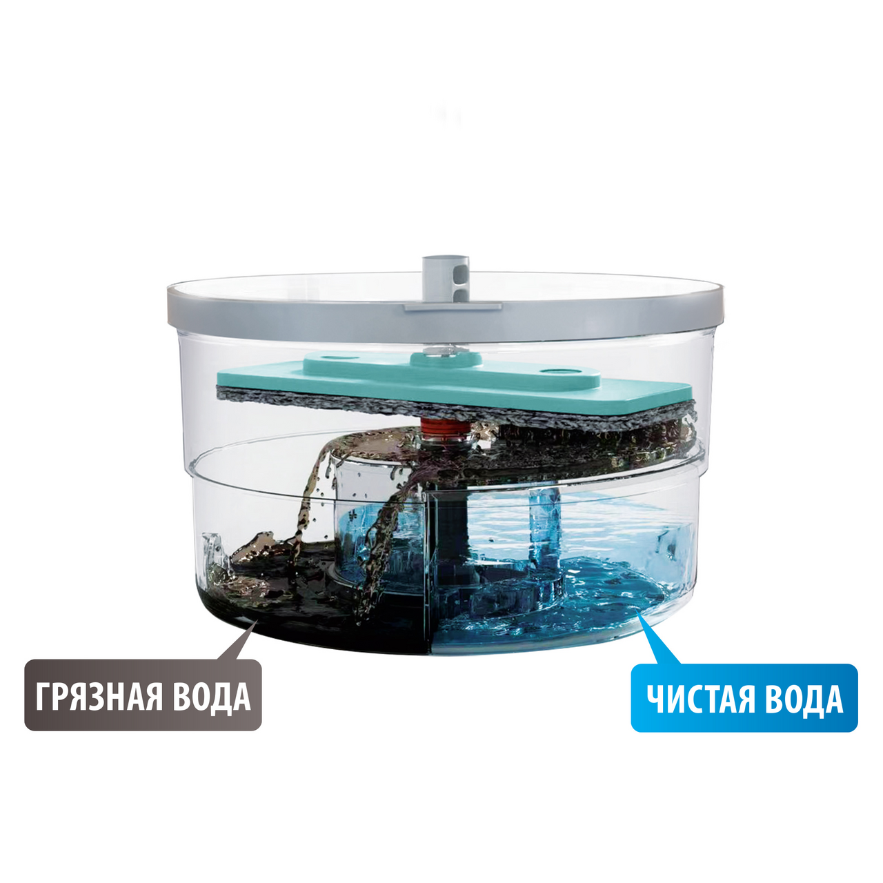 Идеально подходит для влажной уборки помещений любых размеров. Оснащен системой отжима насадки с уникальной функцией фильтрации воды - отделения/сепарации грязной воды, а также опцией индикации полоскания/отжима.