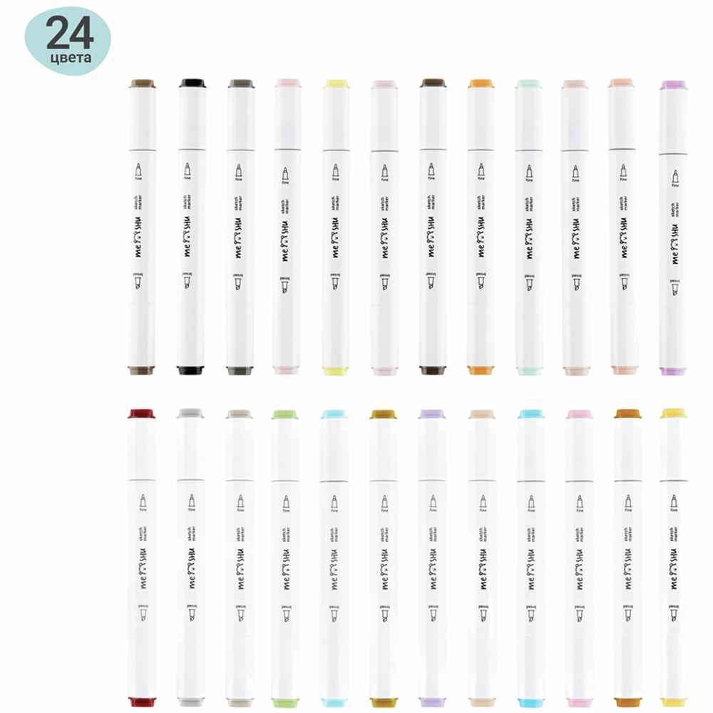 Набор двусторонних маркеров Meshu для скетчинга пастельные цвета 24 цвета