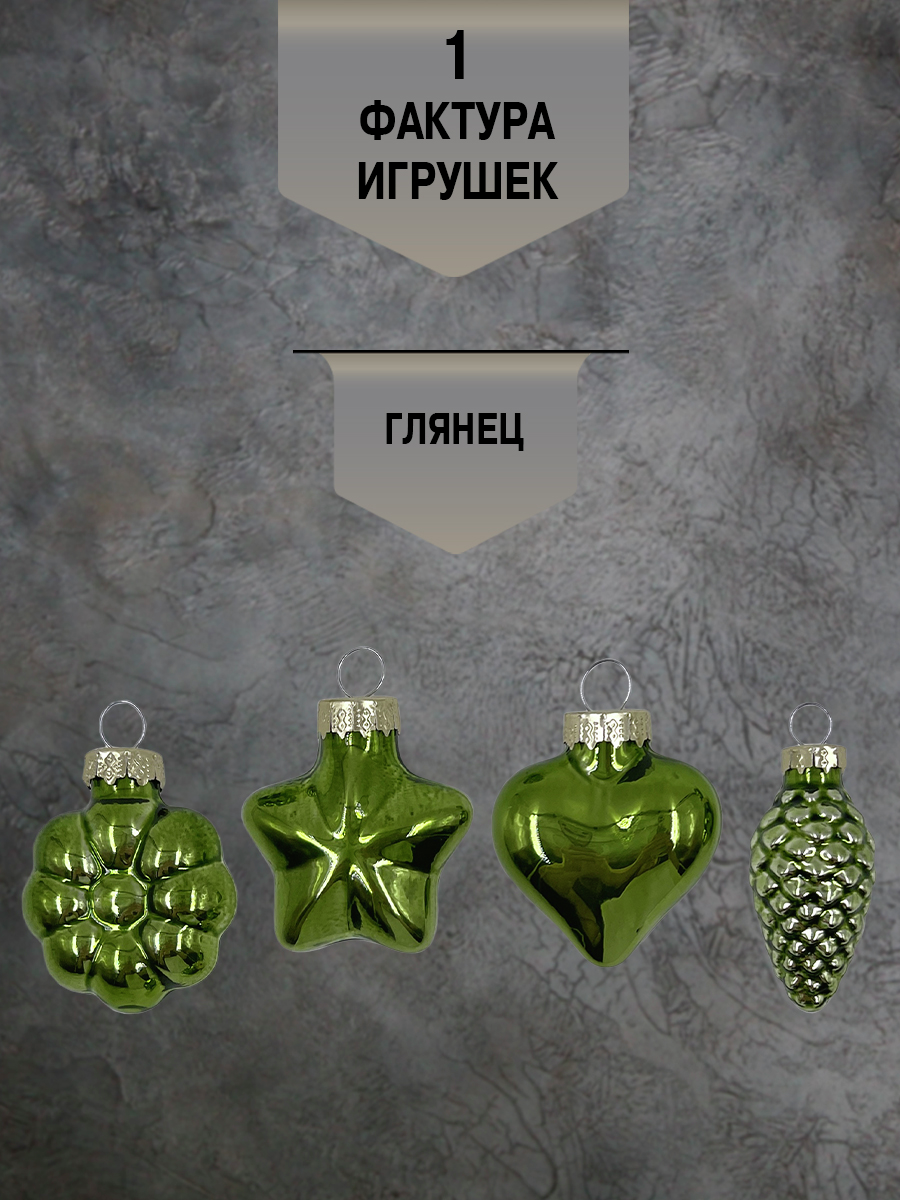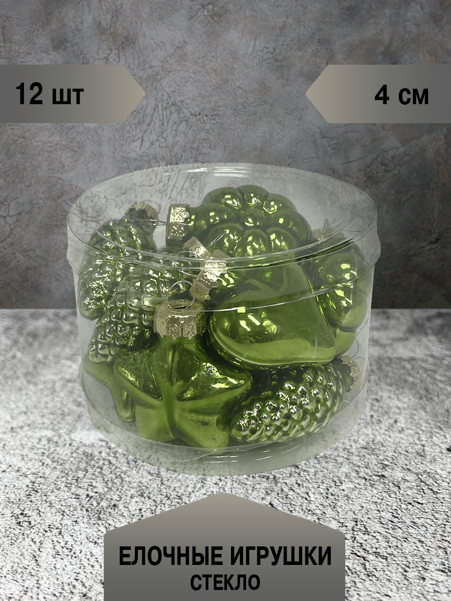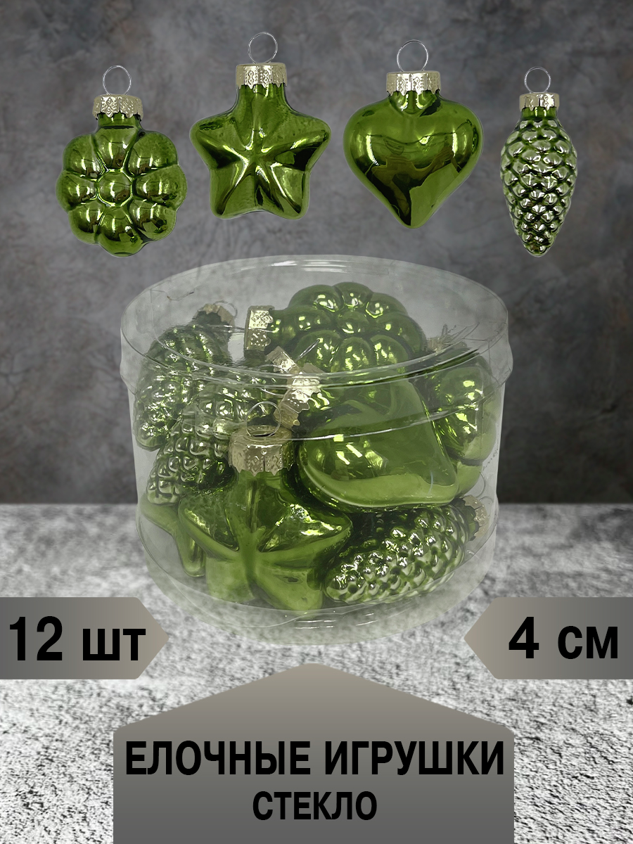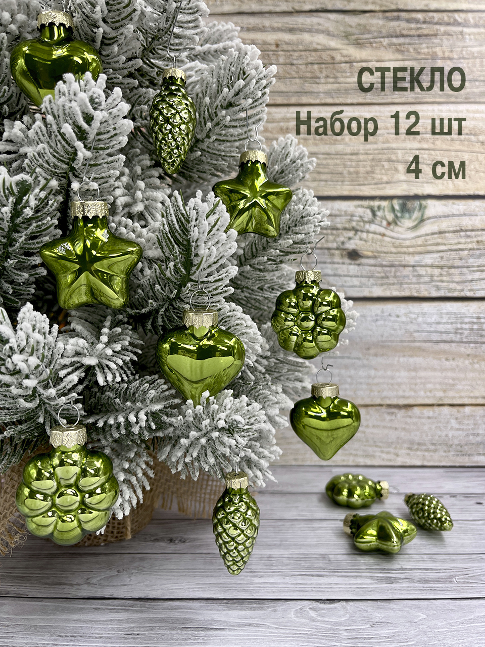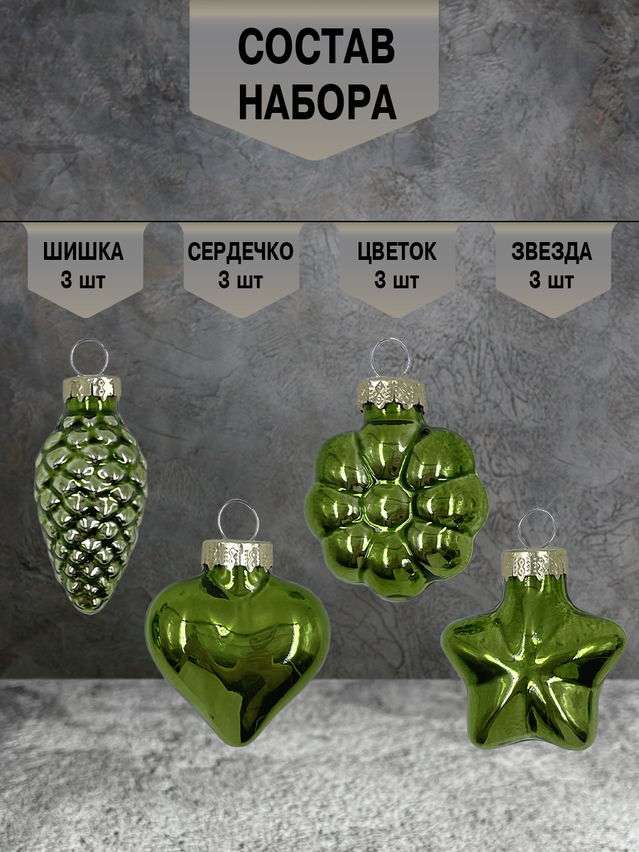Набор елочных игрушек Christmasdeluxe шишка, звезда, сердце и цветок зеленый 4см, 12шт - это традиционный декор для праздничной ели или композиций для украшения интерьеров. Отлично подойдет для украшения новогодней елки, интерьера и просто, как шикарный подарок.
