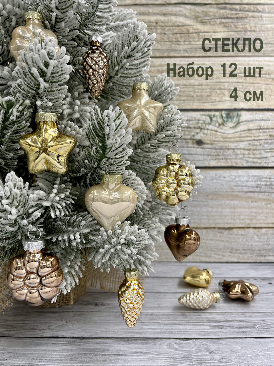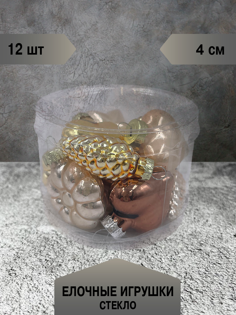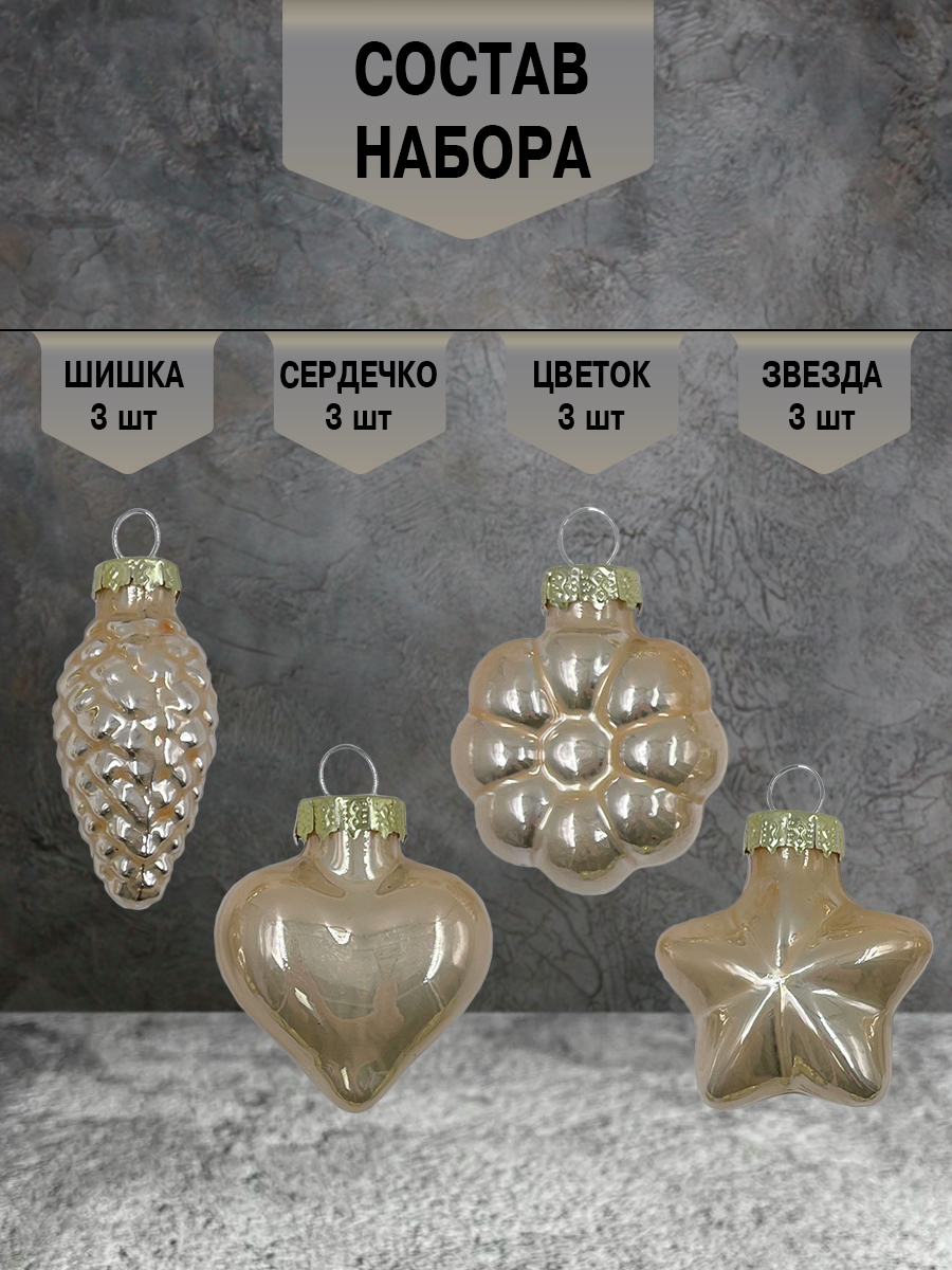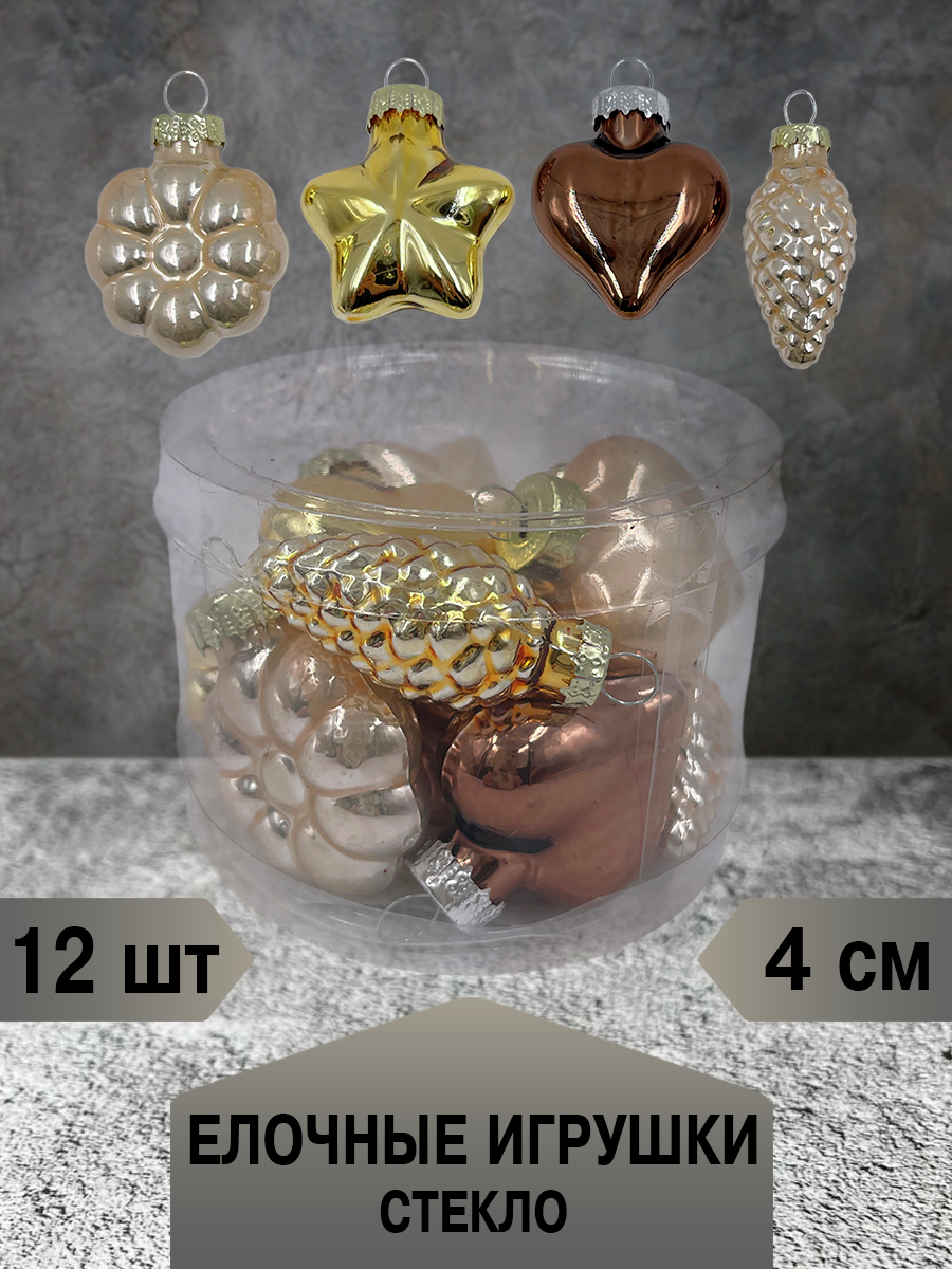 Набор елочных игрушек Christmasdeluxe шишка, звезда, сердце и цветок жемчужный, золотой и коричневый 4см, 12шт - это традиционный декор для праздничной ели или композиций для украшения интерьеров. Отлично подойдет для украшения новогодней елки, интерьера и просто, как шикарный подарок.