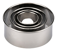 Создан для разнообразия выпечки. Формы имеют острые края, которые идеально режут тесто. Нержавеющая сталь - безопасный экологически чистый материал с высокими антикоррозийными свойствами. В состав набора входят четыре формочки в виде кружков разных размеров. Готовые изделия можно украсить декором, кремом, шоколадом. Формы можно мыть в посудомоечной машине, что облегчает уход.