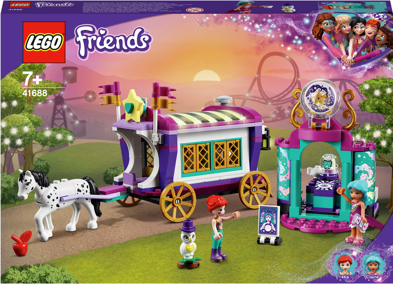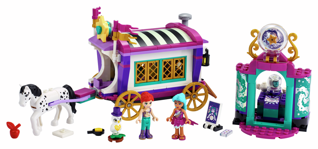 Вы готовы отправиться в мир мистической магии? Добро пожаловать в волшебный караван! Миа пришла к гадалке Клэр, которая может заглянуть в будущее. Заходите в фургон и поздоровайтесь с мудрой совой Спейдс. Заварите чай на плите и угостите лошадь яблоком. Заходите в палатку к Клэр, чтобы она прочитала судьбу Мии. Хрустальный шар кружится и показывает... счастливое лицо! Может быть, Мие повезет на ярмарке?