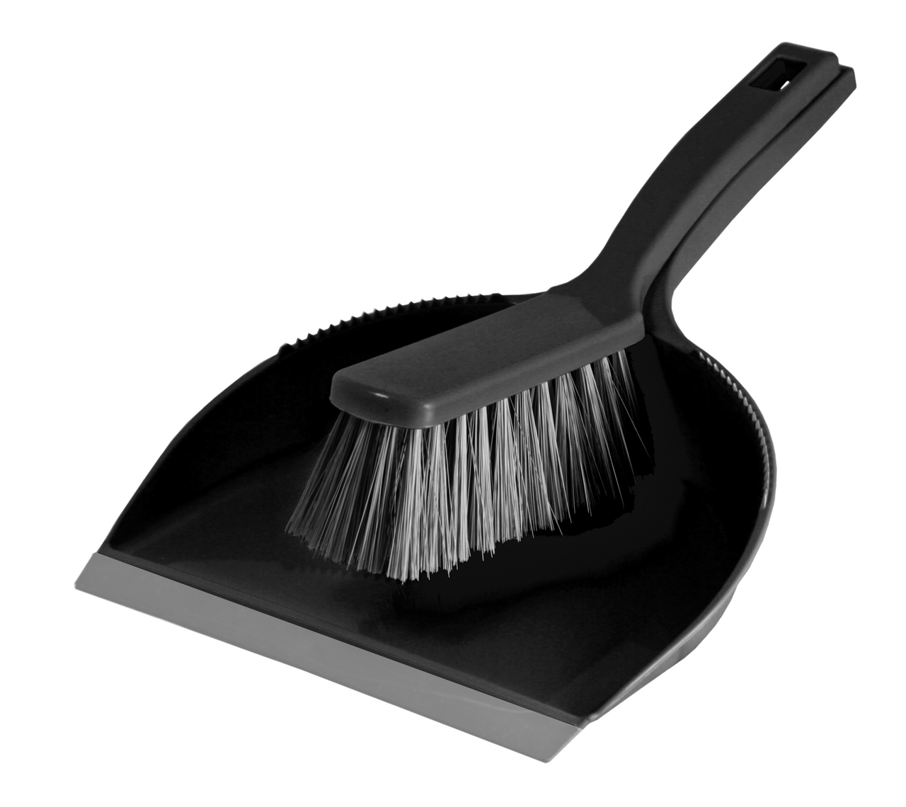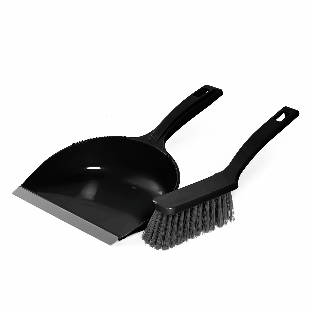 Комплект для сухой уборки. Щетка для подметания и совок. Материал: пластик, резина. Размер набора: 30х21х12,8 см. Цвет черный. Щетка для подметания с длинной ручкой 110см, совок и ручная щетка-сметка, фиксирующаяся на совке, благодаря чему набор удобно хранить.