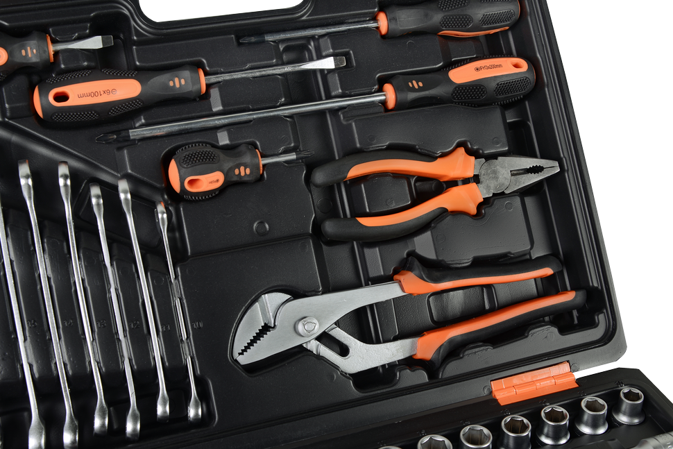 Набор инструментов 1/2, 1/4 дюйма CrV, пластиковый кейс 76 предметов Вихрь 73/6/7/4 включает в себя обширный комплект снаряжения, необходимого для слесарных работ. Большое количество торцевых головок и вставок охватывает наиболее популярные типоразмеры крепежа. Для слесарных работ в комплекте имеются пассатижи и клещи, а также молоток. Кейс выполнен из пластика, оснащен раздельными петлями и двумя металлическими замками для безопасной транспортировки. Преимущества: 76 предметов в наборе; Инструмент из CrV; Поставляется в кейсе; Длительный срок службы.