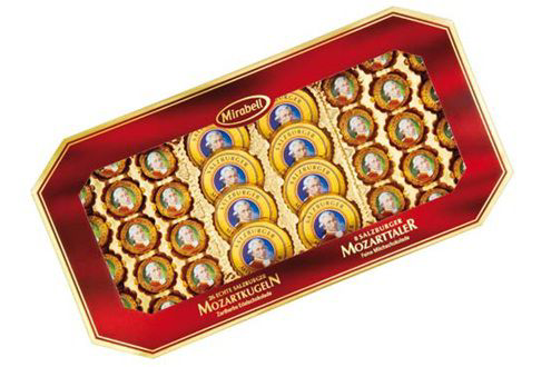Набор конфет Mirabell Mozart, 600г - изысканное ассорти в презентабельном оформлении. В коробке 24 шоколадных шарика и 8 медалей пралине с начинкой из нуги и марципана. Высококачественные конфеты, посвященные великому австрийскому композитору и музыканту Вольфгангу Амадею Моцарту, производятся в Зальцбурге. Чтобы изготовить одну конфетку, кондитерам требуется 2.5 часа, поэтому лакомство получается поистине великолепным. Ассорти послужит достойным подарком близким, друзьям или коллегам по работе.