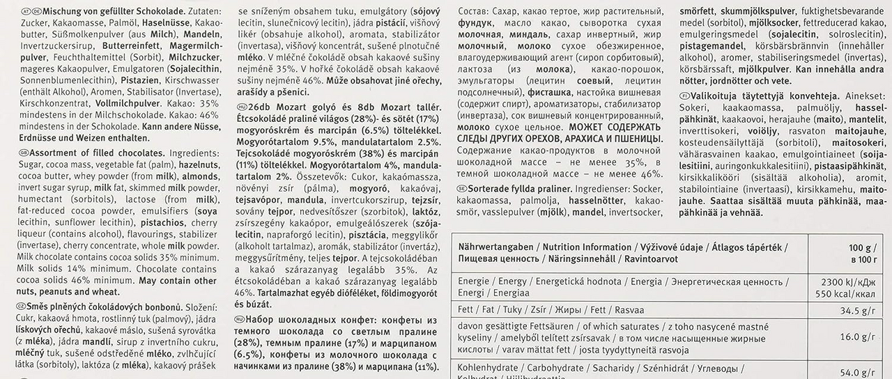 Набор конфет Reber Mozart Mirabell из молочного шоколада с начинкой из пралине и марципана, 600г