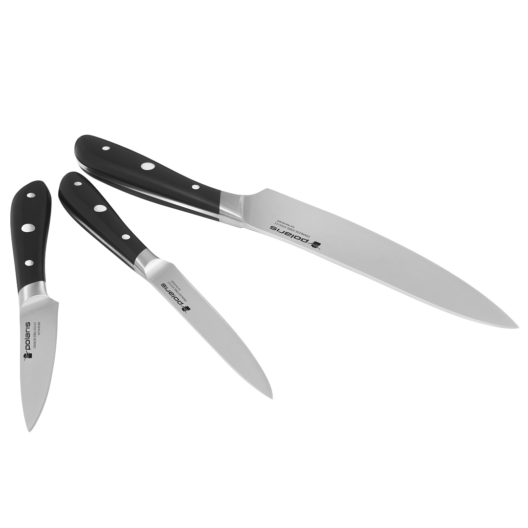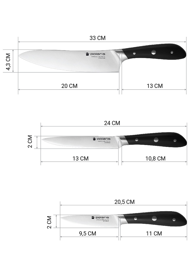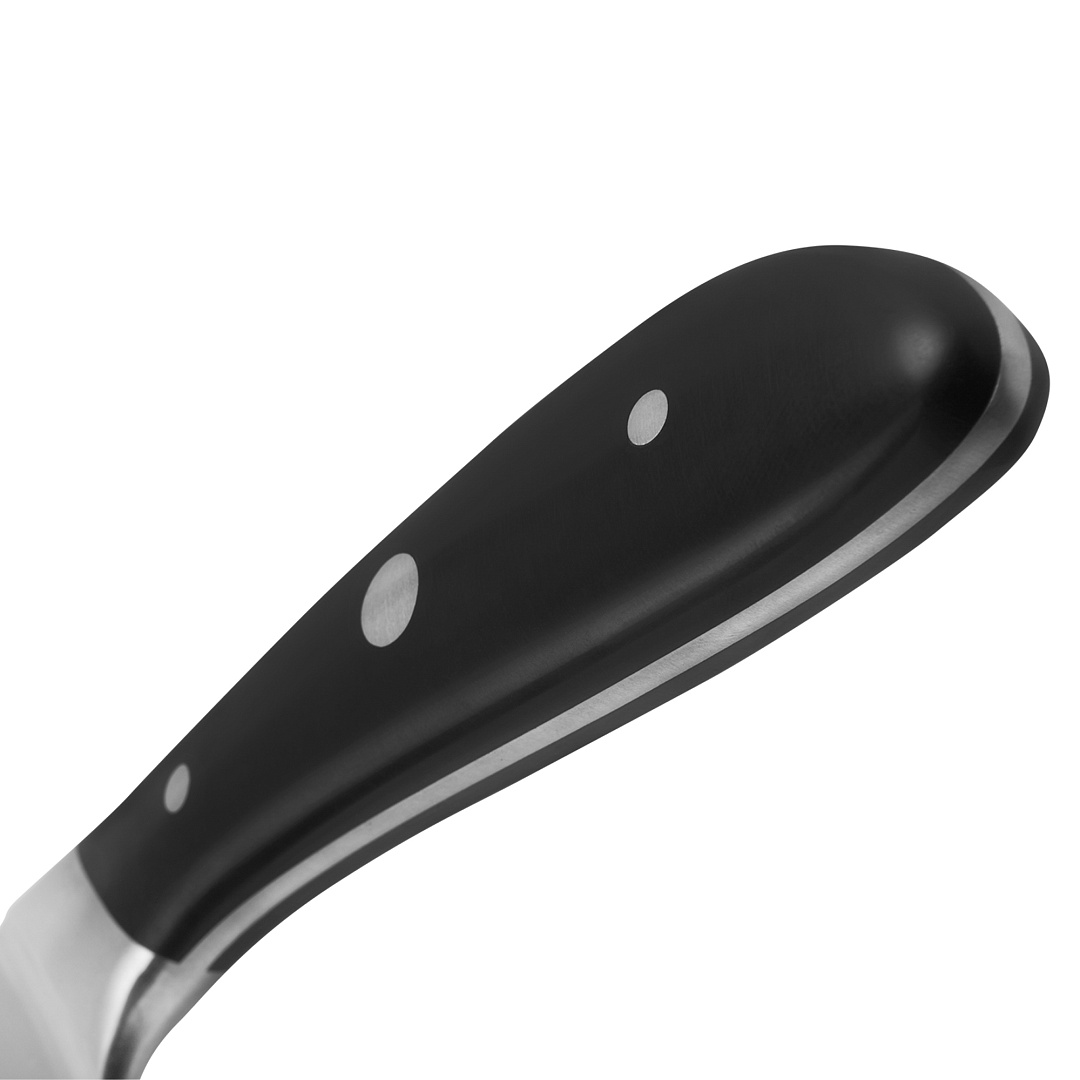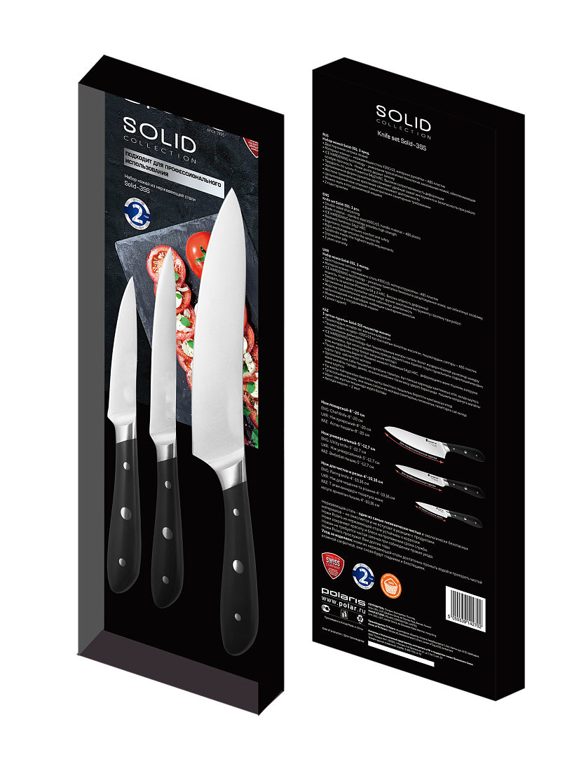Двусторонняя заточка лезвий.Материал клинка - нержавеющая сталь X30Cr13.Материал рукоятки - ABS пластик.ICE HARDENING technology - уникальная трехэтапная технология закаливания ножей, обеспечивающая особую прочность.Ножи долго держат заточку.Твердость по шкале Роквелла 54 2HRC.Высокая сопротивляемость деформации.Эргономичная форма рукоятки обеспечивает удобный захват инструмента и безопасность при работе.Жесткое трехклепочное крепление обеспечивает долговечность.Цельнокованый нож отвечает самым высоким санитарным требованиям.Можно мыть в посудомоечной машине.2 года гарантии.