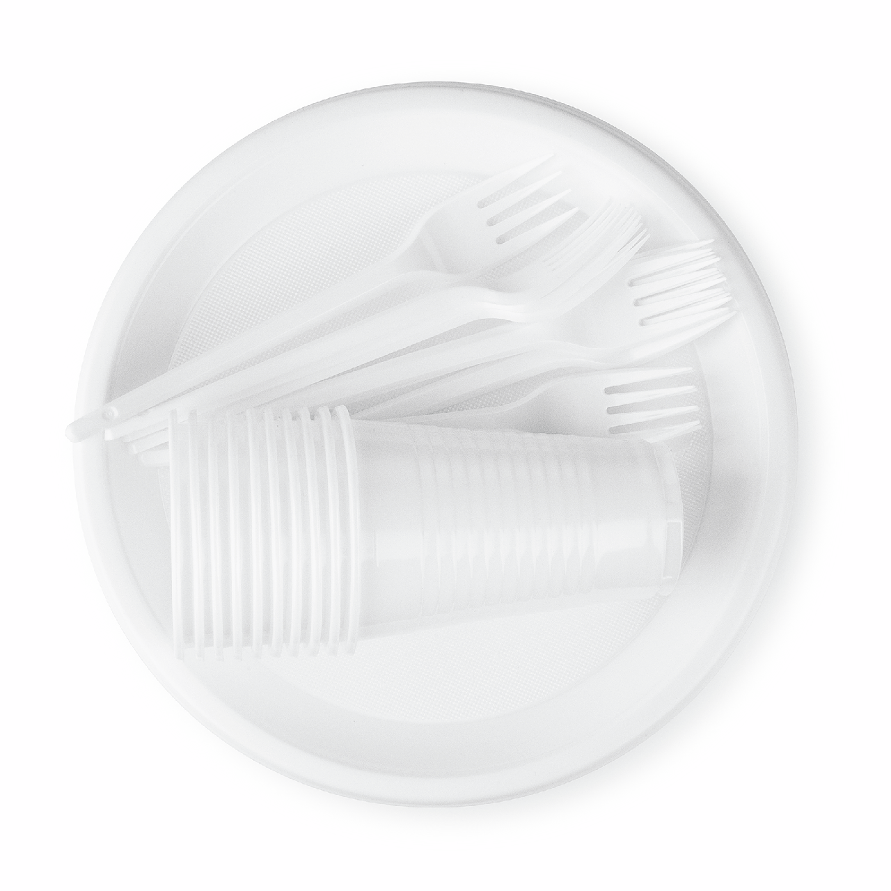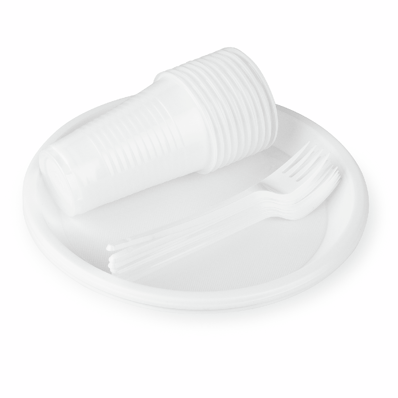 aro Набор одноразовой посуды на 10 персон тарелки + стаканы + вилки пластиковый белый, 10шт