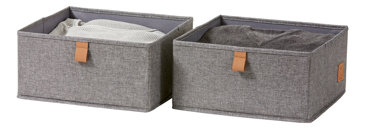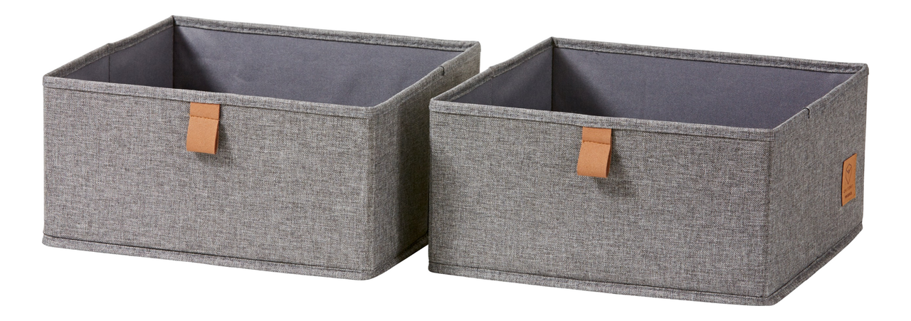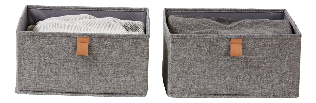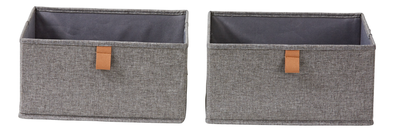 Многофункциональные органайзеры -футляры для хранения. Имеют твердые стенки и дно. В наборе 2 штуки коробок одинаковых размеров для удобства хранения разногабаритных вещей. Материал: внешняя ткань: 100% лен. Внутренняя ткань: 100% полиэстер.