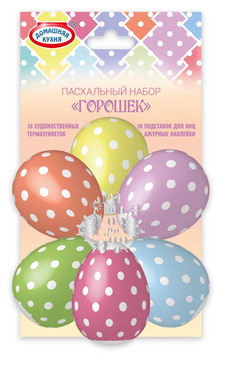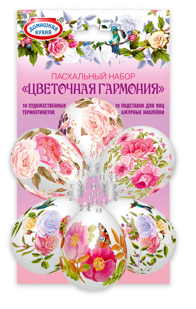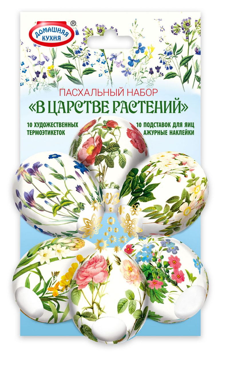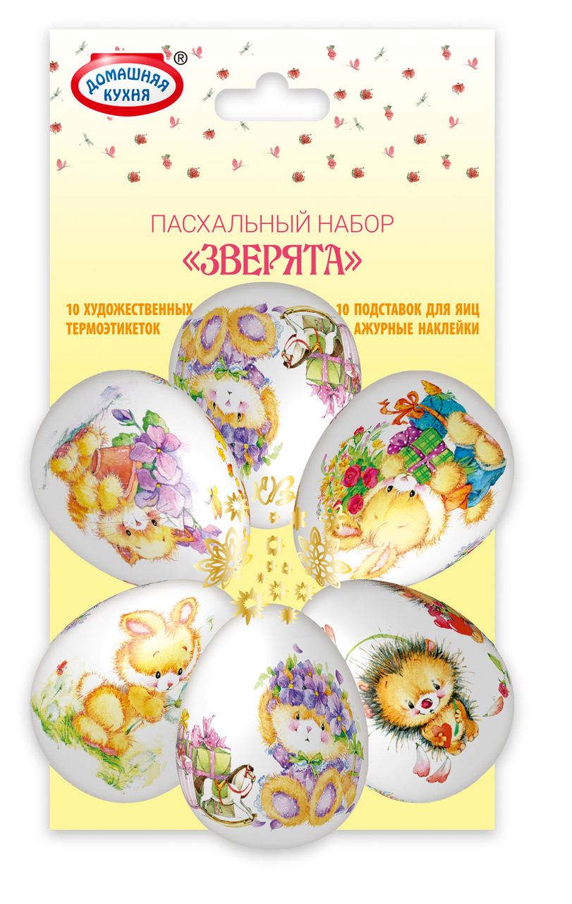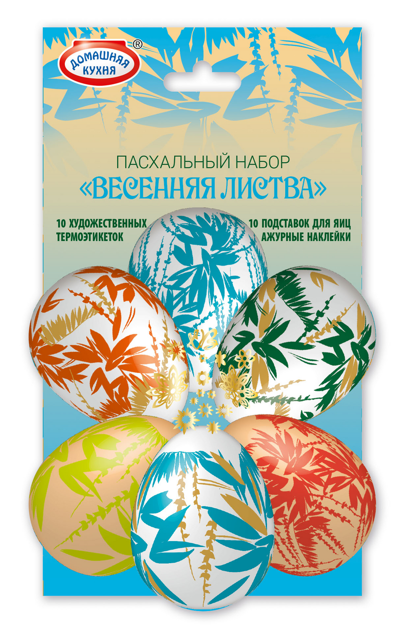 Набор пасхальный Домашняя кухня народный промысел представляет собой набор ярких интересных термоэтикеток и подставок, которые предназначены для пасхальных яиц. Ими можно украсить как уже окрашенные, так и только что сваренные куриные яйца. Они изготовлены из материала, безопасного для здоровья. Изделия необходимо хранить в сухом прохладном месте – так они дольше сохранят свои качества. Продукт помещен в упаковку, которая позволяет оценить качество товара еще на стадии покупки. Способ применения пленок очень просто: нужно надеть их на остывшее яйцо, а затем на несколько секунд опустить в кипящую воду.