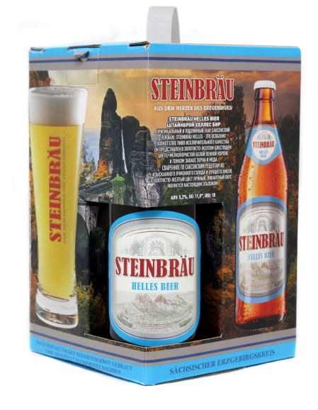Набор пивной Steinbrau Helles + бокал, 0.5л x 3 шт - оригинальное немецкое пиво исключительного качества, подлинное как саксонский пейзаж. Оно производится из высококачественного хмеля из крупнейшего хмелеводческого региона Германии, местного солода и чистейшей воды из собственных скважин, обогащенной природными минералами и микроэлементами. Сваренное по саксонским рецептам, пиво Штайнброй Хеллес является настоящим эталоном.