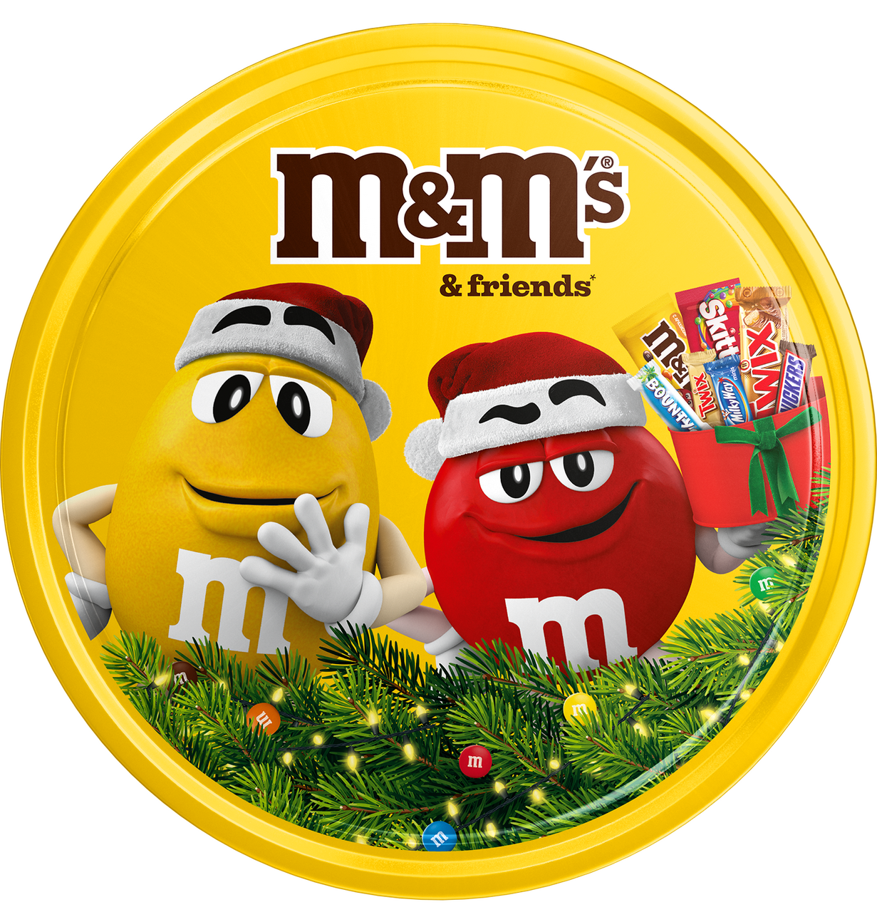 Подарочный набор M&M’s & Friends на Новый Год это особенно ценный подарок в яркой и премиальной жестяной упаковке. В наборе представлены любимые бренды M&M's, Snickers, Twix, Bounty, Milky Way, Mars и Skittles. - Яркая упаковка с любимыми героями M&M's сделает каждый день ожидания праздника особенным и наполнит его волшебством;- Удобный формат индивидуального подарка, который позволяет поделиться новогодним настроением с близкими;- Прочная жестяная упаковка с новогодним дизайном может использоваться как место для хранения важных для получателя вещей или использоваться для разных целей в течение долгого времени.