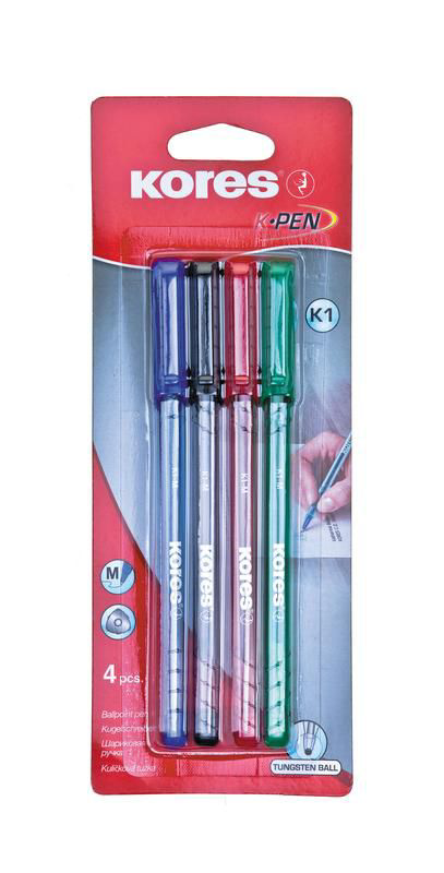 Ручки шариковые Kores К1 4 цвета 0.7мм, 4шт