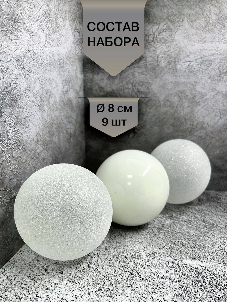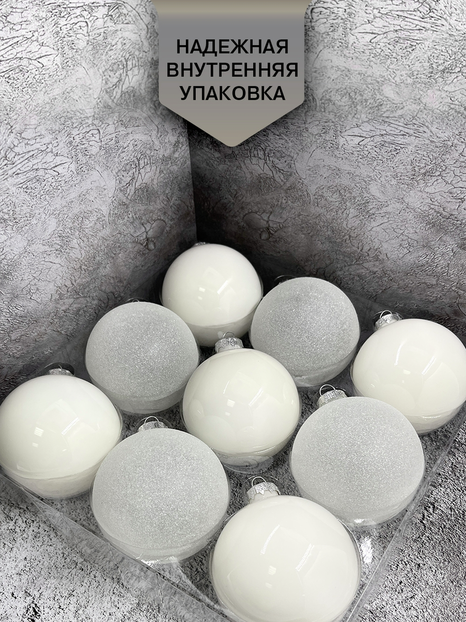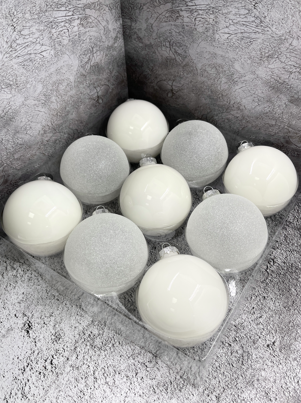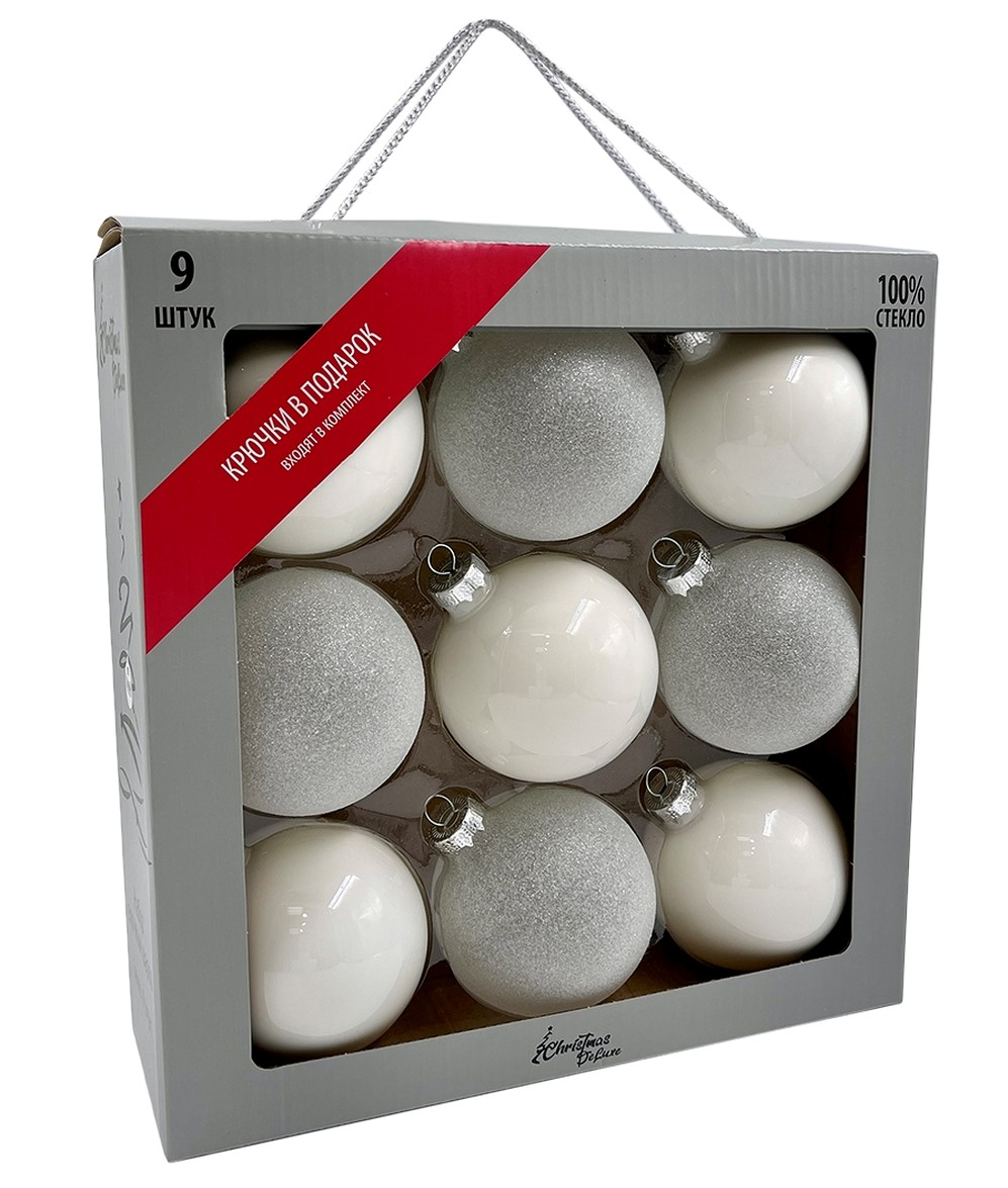 Набор шаров Christmasdeluxe белый и прозрачный 8см, 9шт - оригинальное украшение для новогодней ели или интерьера дома, офиса. Насыщенные цвета в сочетании с интересным декором создадут праздничную и уютную атмосферу. Будет прекрасным подарком для родных, друзей и коллег.
