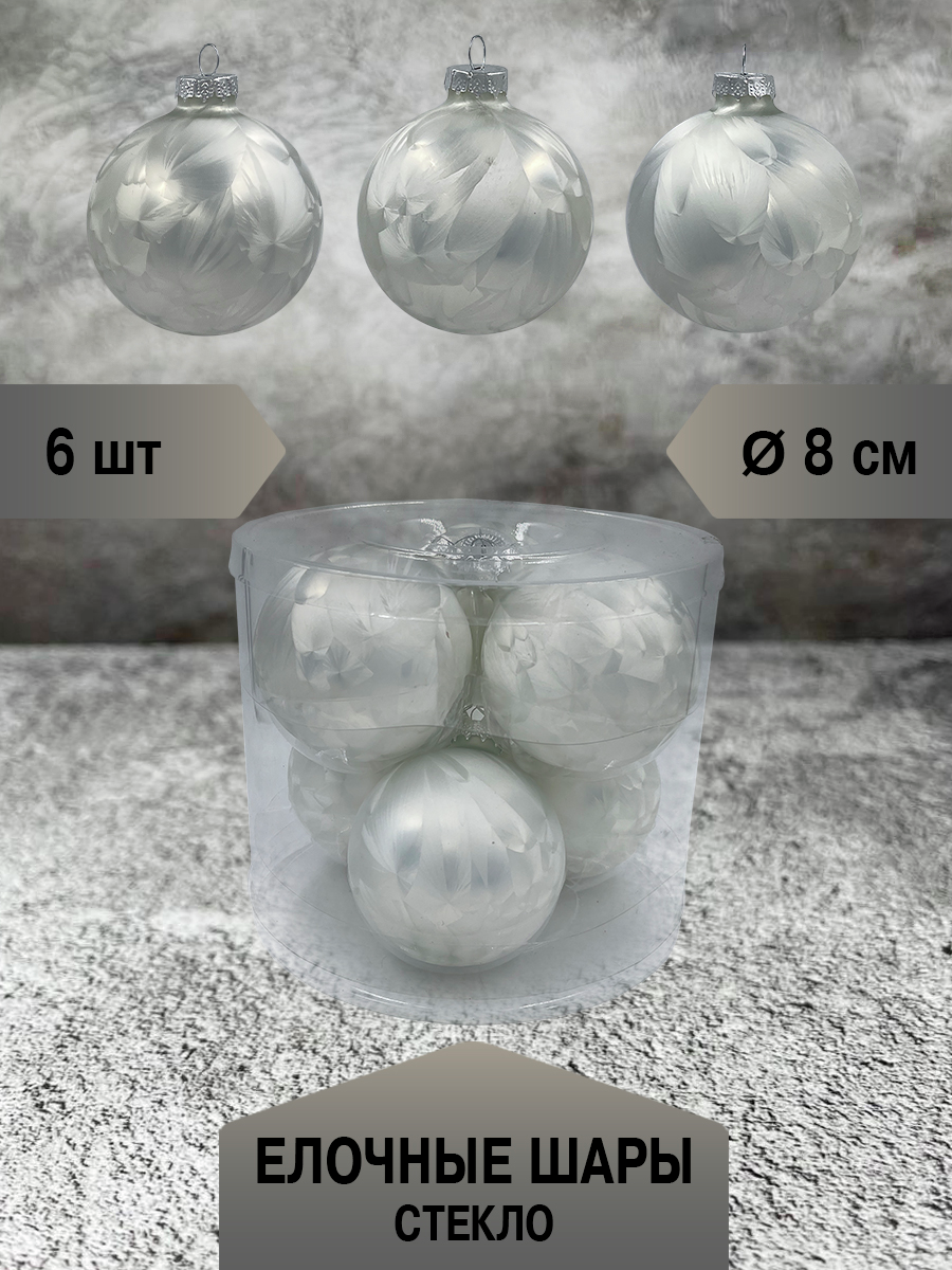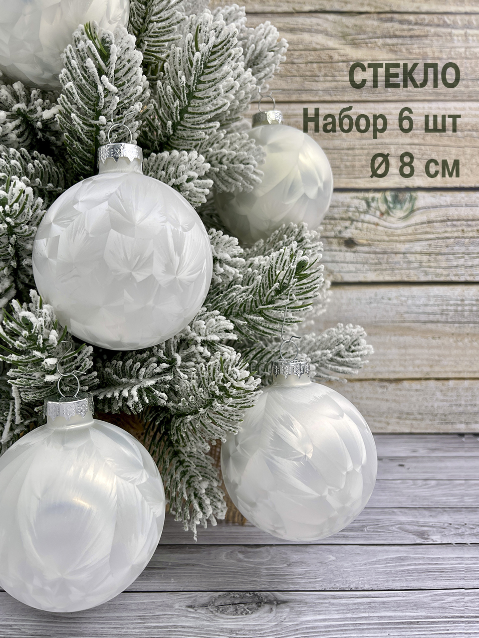 Набор елочных шаров Christmasdeluxe с узором белый 8см, 6шт