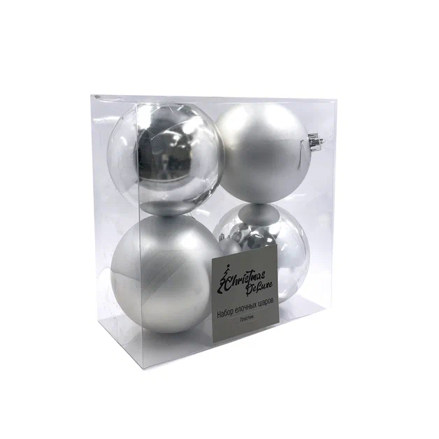Набор елочных шаров Christmasdeluxe глянцевый и блестящий серый жемчуг 10см, 4шт