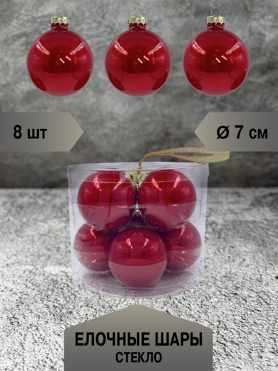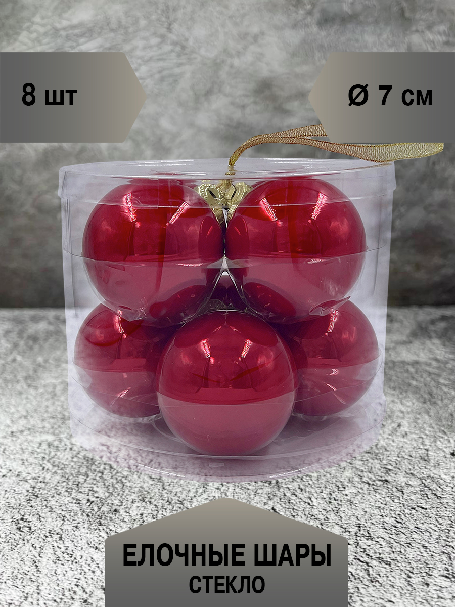 Набор елочных шаров Christmasdeluxe красный перламутр 7см, 8шт