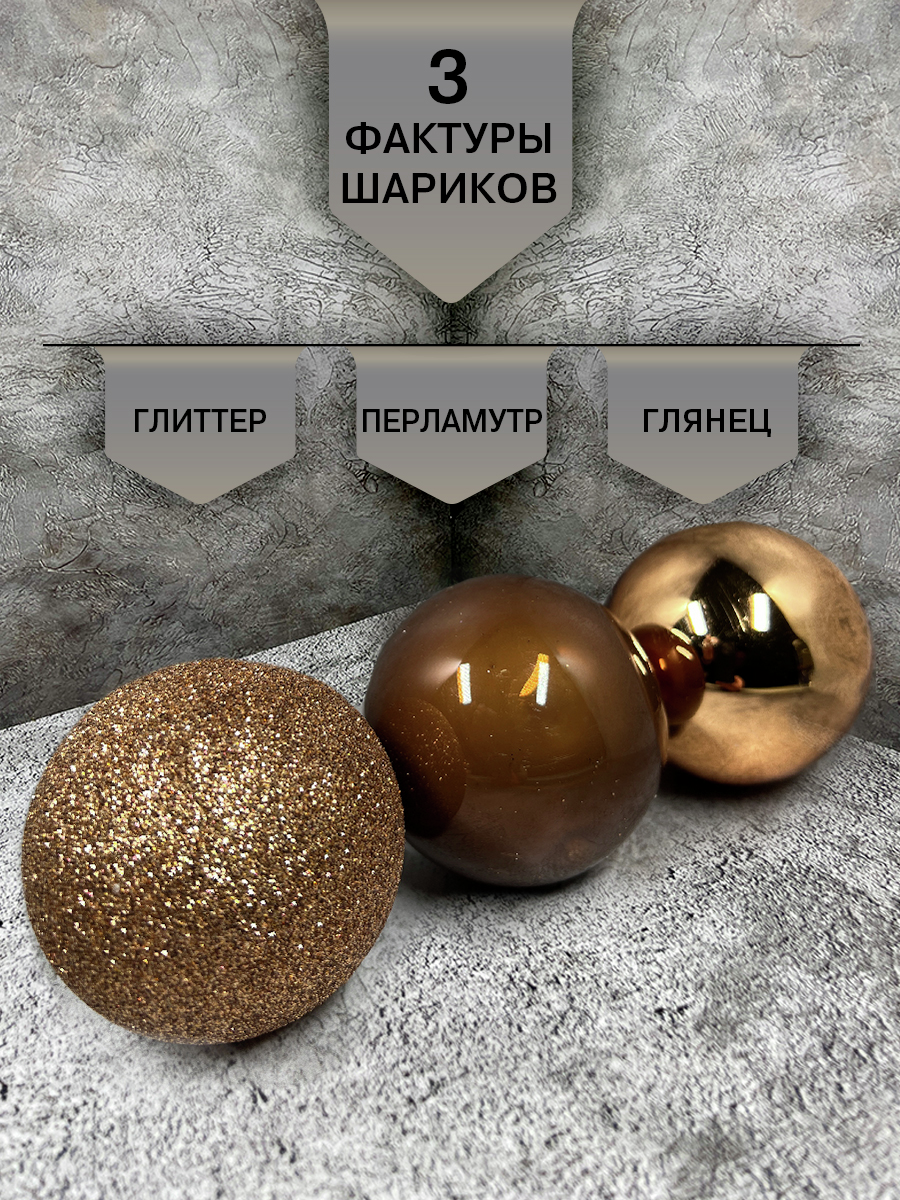Набор шаров Christmasdeluxe шоколадное суфле, 13шт - оригинальное украшение для новогодней ели или интерьера дома, офиса. Насыщенные цвета в сочетании с интересным декором создадут праздничную и уютную атмосферу. Будет прекрасным подарком для родных, друзей и коллег.