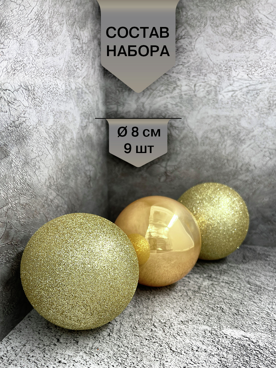 Набор шаров Christmasdeluxe золото 8см, 9шт - оригинальное украшение для новогодней ели или интерьера дома, офиса. Насыщенные цвета в сочетании с интересным декором создадут праздничную и уютную атмосферу. Будет прекрасным подарком для родных, друзей и коллег.