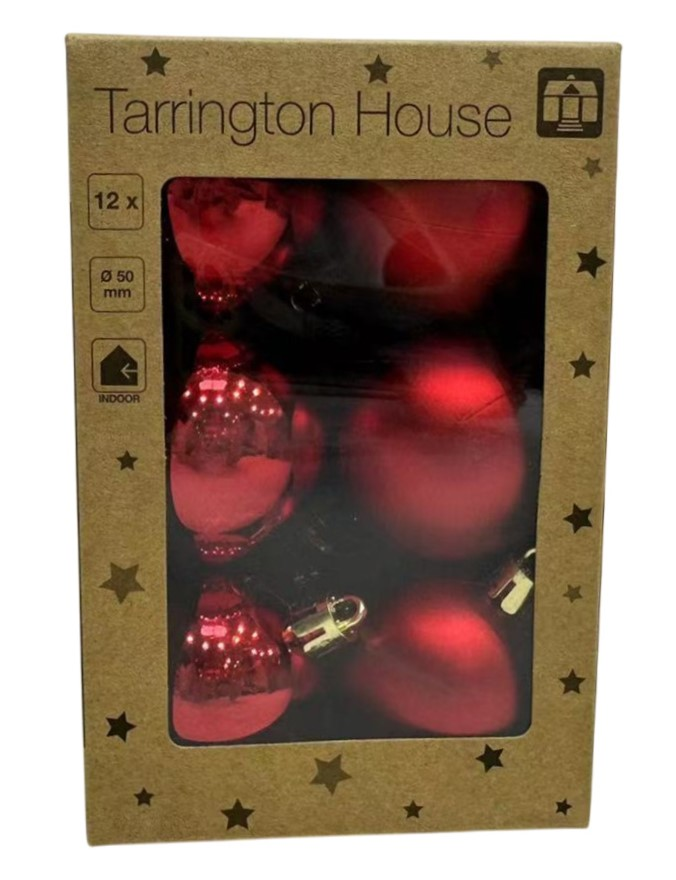Tarrington House Набор елочных шаров красный 5см, 12шт