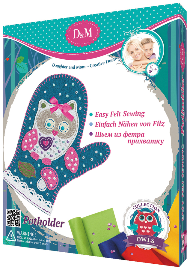 Набор для создания своими руками оригинальной прихватки с изображением очень популярной в этом сезоне совы. В наборе есть все необходимое: фетровые детали, нитки, пластиковая игла, декоративные элементы. Возрастное ограничение 5+