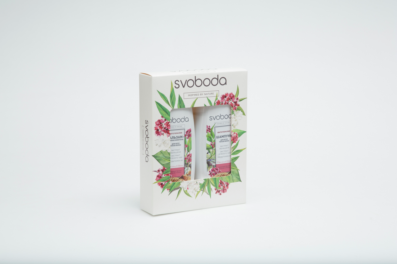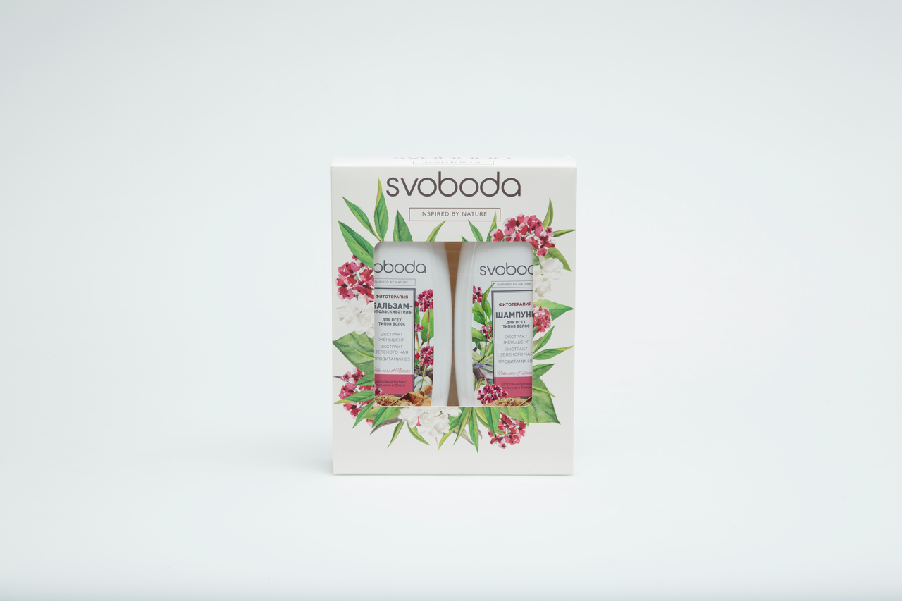 В состав набора входит:Шампунь Svoboda для всех типов волос (76 г) + Бальзам-ополаскиватель Svoboda для всех типов волос (75 мл)