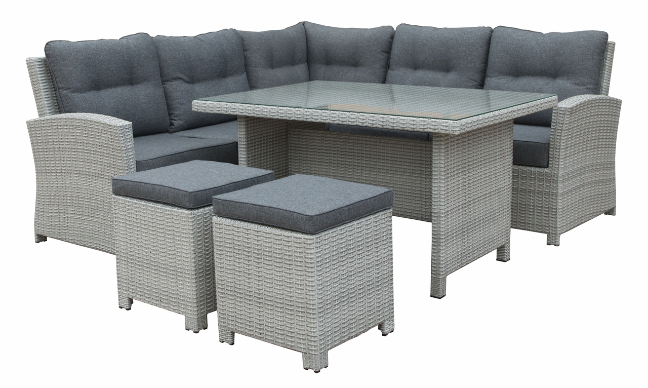 Набор мебели из ротанга TARRINGTON HOUSE Arlena отличный вариант для квартиры, загородного дома и даже террасы. Набор выполнен из качественных и износостойких материалов. В комплекте софа с подлокотником и софа без подлокотников, а так же 1 стол. Технические характеристики: - Размеры стол: 60х60х35 см,- Размеры софа с подлокотником: 130х77х62 см,- Размеры софа без подлокотника: 77х142х62 см- Материал: сталь(каркас)/полиэтилен (имитация ротанга)- Подушки в комплекте, стол со стеклом- Цвет: черный- Максимальная нагрузка: 110 кг на каждое сиденье- Вес нетто: 44,8 кг- Вес брутто: 54,5 кг