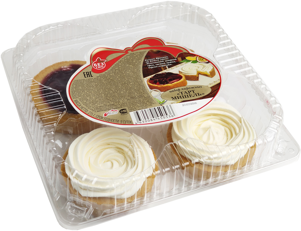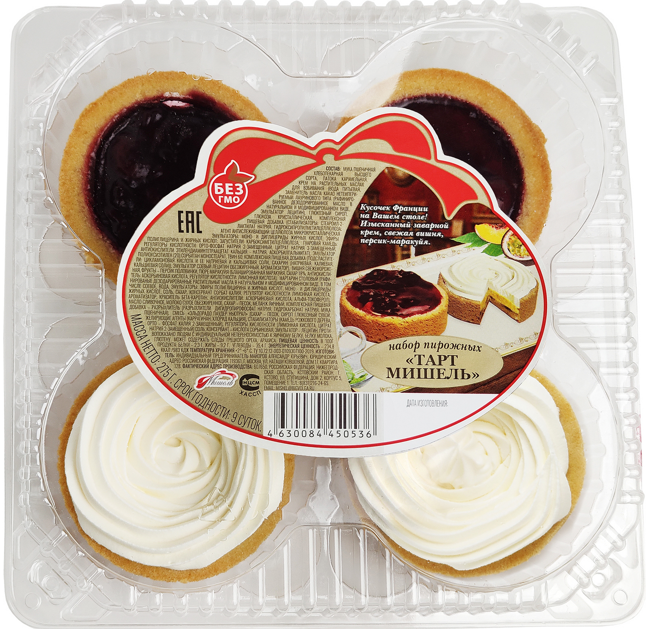 Набор пирожных Тарт Мишель, 275г изготовлен отечественным производителем. Основа пирожных – песочная, содержит масляный крем, фруктовую начинку. Десерт поставляется в коробке из пластика. Хранить набор пирожных можно 3 недели при температуре от плюс 2 до плюс 6 градусов. Лакомство обязательно придется по вкусу сладкоежкам, хорошо дополнит собой чай, кофе. Также набор стоит купить тем, кто ищет вкусный подарок для близкого человека. Десерт сделан из пшеничной муки высшего сорта, вишневого, персикового конфитюра. Также в состав десерта входит киви. Набор пирожных стоит относительно недорого. Приобрести набор пирожных Тарт Мишель, 275г можно в торговом центре METRO.